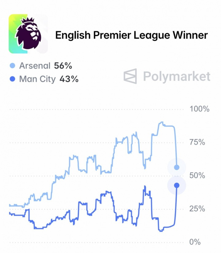 机构们在给瓜迪奥拉提士气,目前,他们逆袭成功概率来到了40%+,阿森纳从几乎是稳的90%+降低到50%+,确实是令人无比失望的。